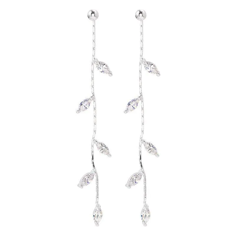 2021 темпераментные длинные серебряные висячие серьги с кристаллами и листьями для женщин, свадебные модные ювелирные изделия, подарочные серьги для женщин