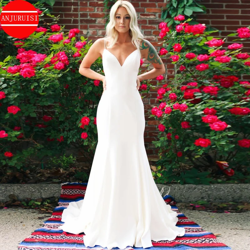 Новинка 2020, пляжные свадебные платья на бретелях-спагетти, Vestid...