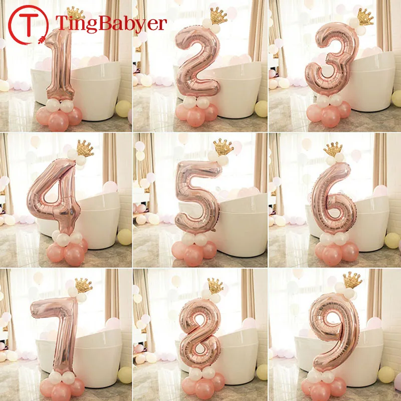 1, 2, 3, 4, 5, 6, 7, 8, 9 лет, с номером на день рождения фольга, латекс, воздушные шары для мальчиков и девочек, украшение для вечерние ринки, Детские шарики для будущей мамы, розовое золото