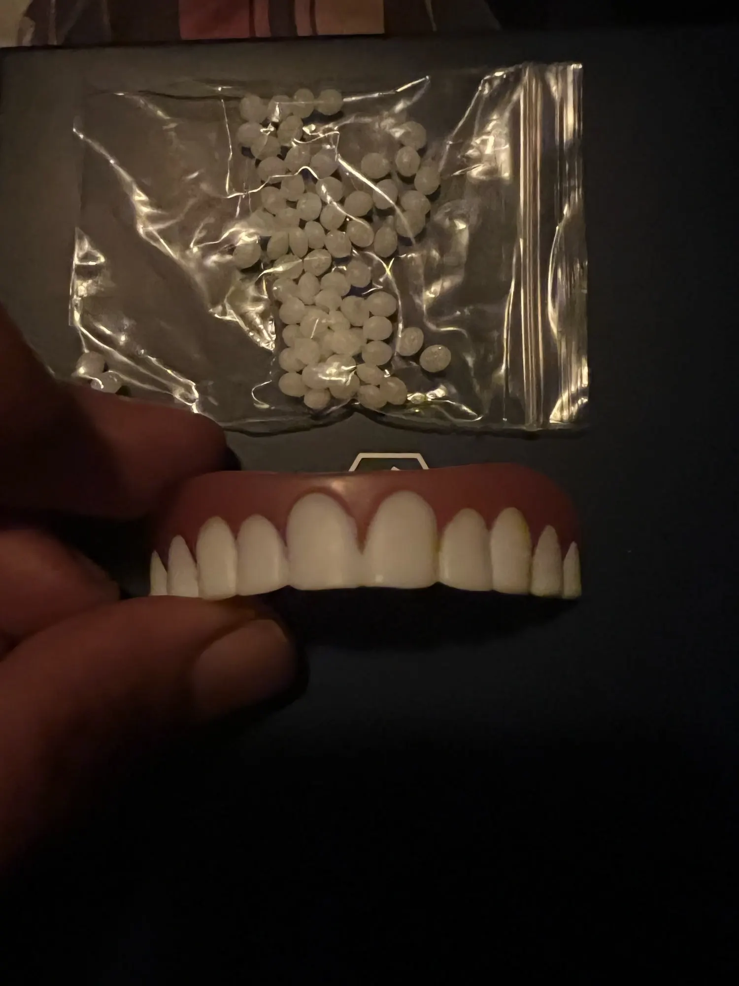 Это просто ужас (2 пластиночки ) которые можно только на клей к зубам приклеить. Выкинули в ведро. Прилагались к зубам не поняли для чего ,пластмассовые шарики.