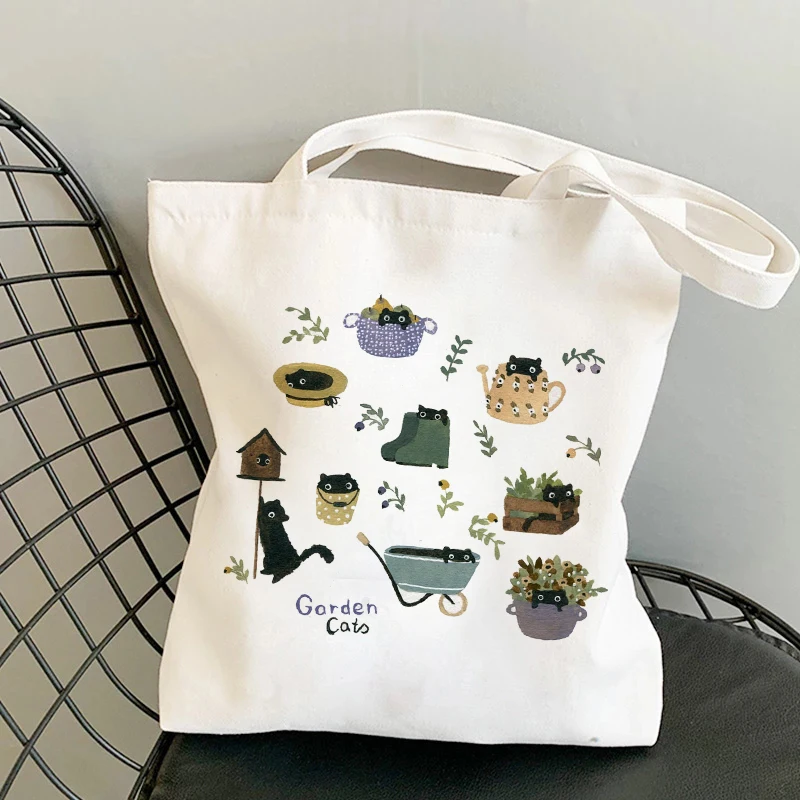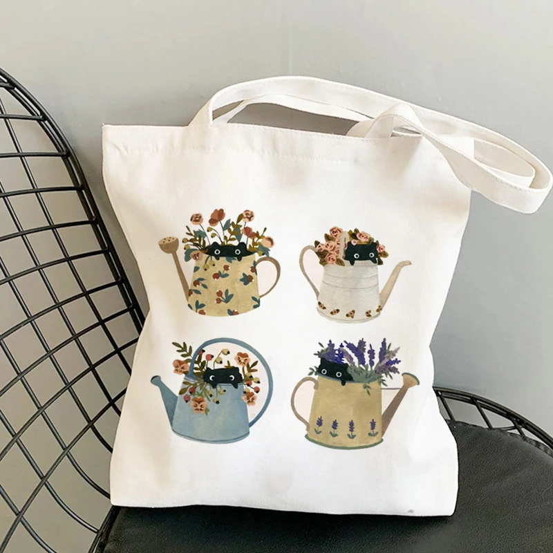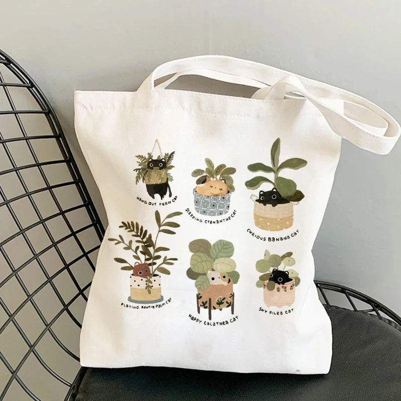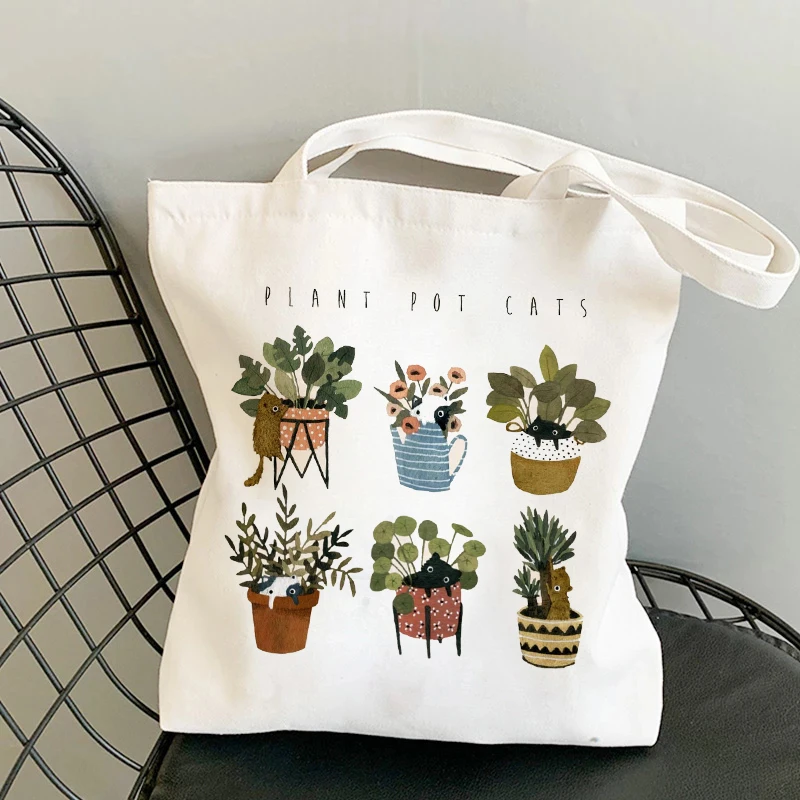 Холщовая Сумка-тоут через плечо, сумки для магазина, вместительные экологически чистые многоразовые сумочки с кошкой, новинка 2021, повседневные милые винтажные подарочные сумки для учителей искусства