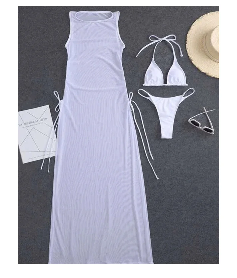 Летний белый сексуальный комплект бикини из 3 предметов, женский купальник, пуш-ап, пляжная одежда, купальник для женщин, купальный костюм для девочек, бикини для бассейна, 2022