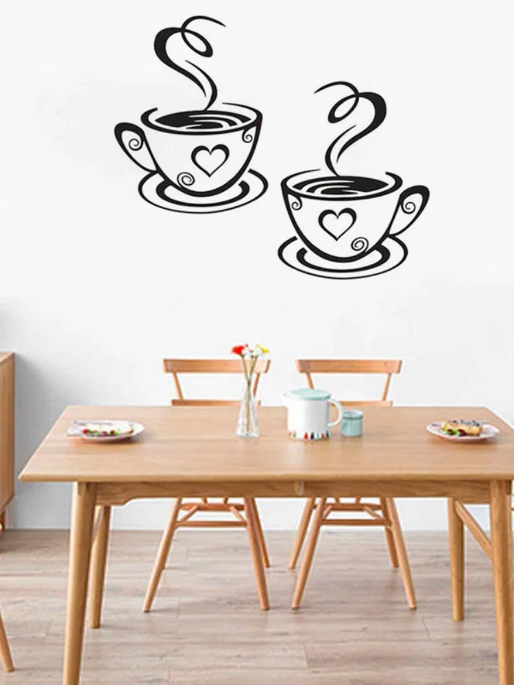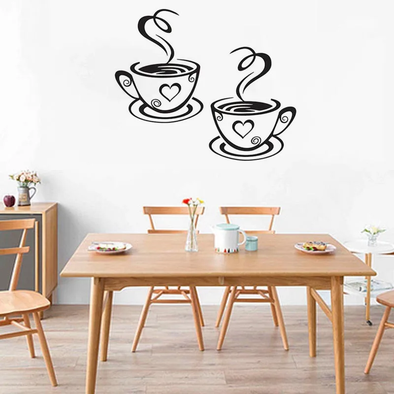 Горячая распродажа Новые Двойные кофейные чашки, настенные наклейки из ПВХ виниловые художественные наклейки на стену клейкая наклейка s декор для кухни комнаты Прямая поставка