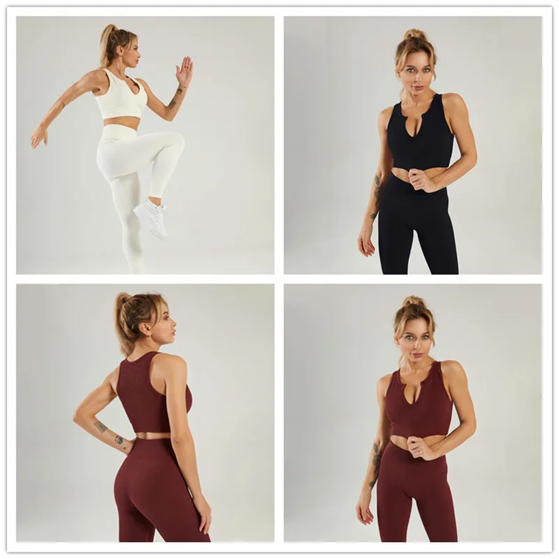 5 шт., Женский бесшовный спортивный костюм с U-образным вырезом