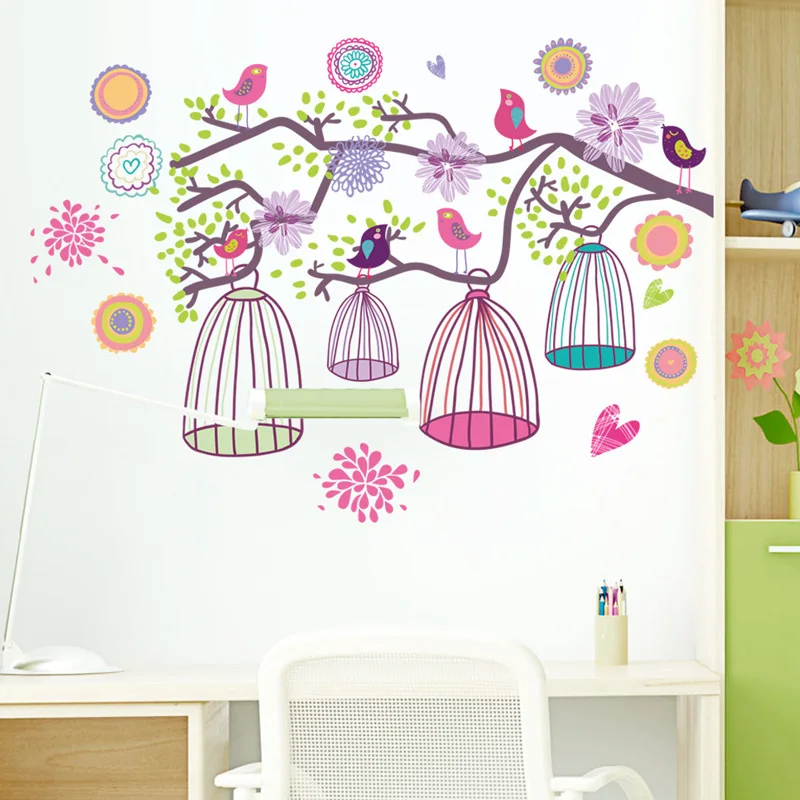 Веточка клетка для птиц настенная наклейка для детей детские комнаты гостиная спальня фон украшения обои детские съемные наклейки