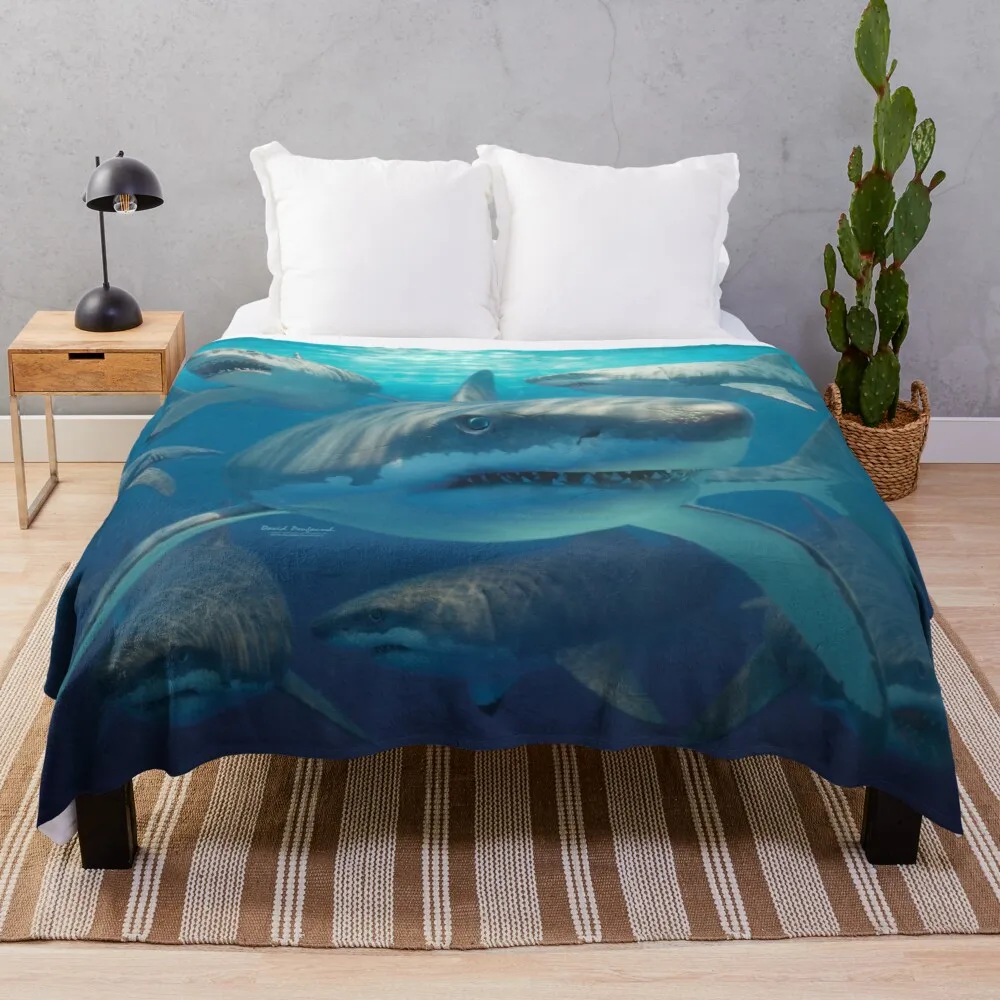 Флисовое одеяло с изображением белых акул, детское теплое одеяло для кровати с художественным принтом, одеяло для новорожденных, подарок для мальчиков и взрослых