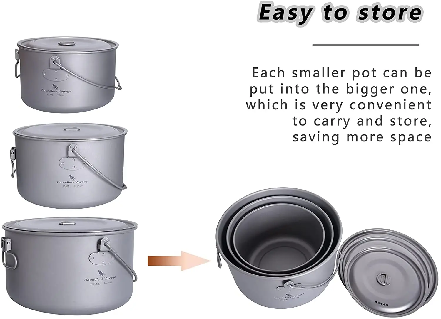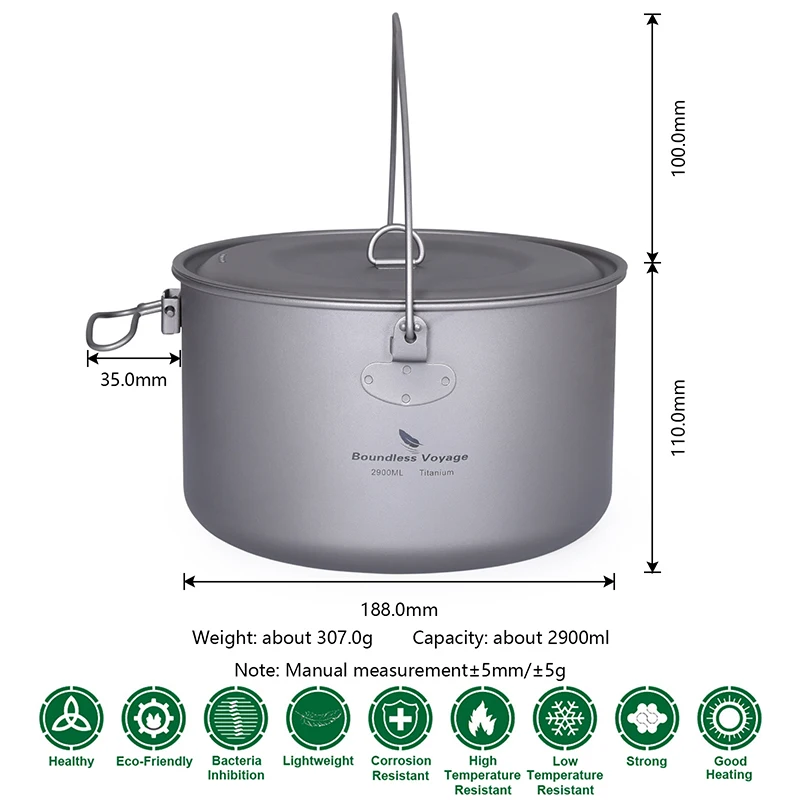 Титановая кастрюля Boundless Voyage для кемпинга на открытом воздухе кастрюля 2900 мл 1950 мл суповая кастрюля большой емкости