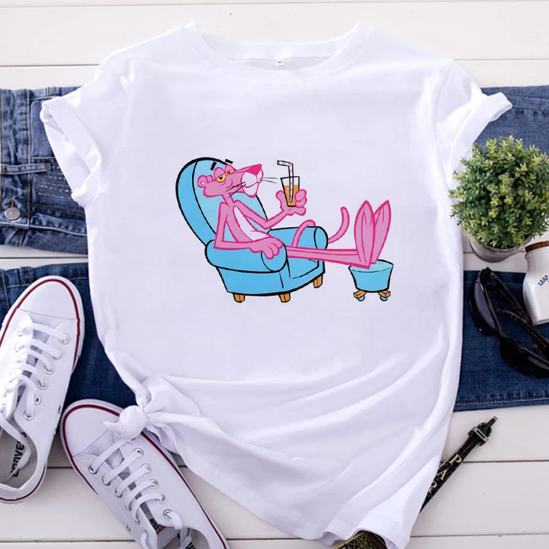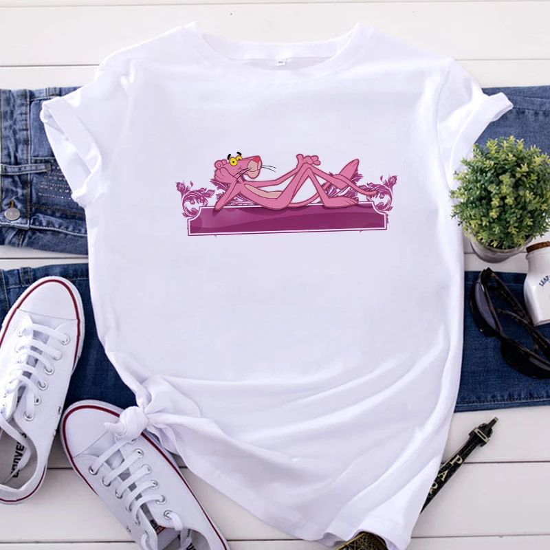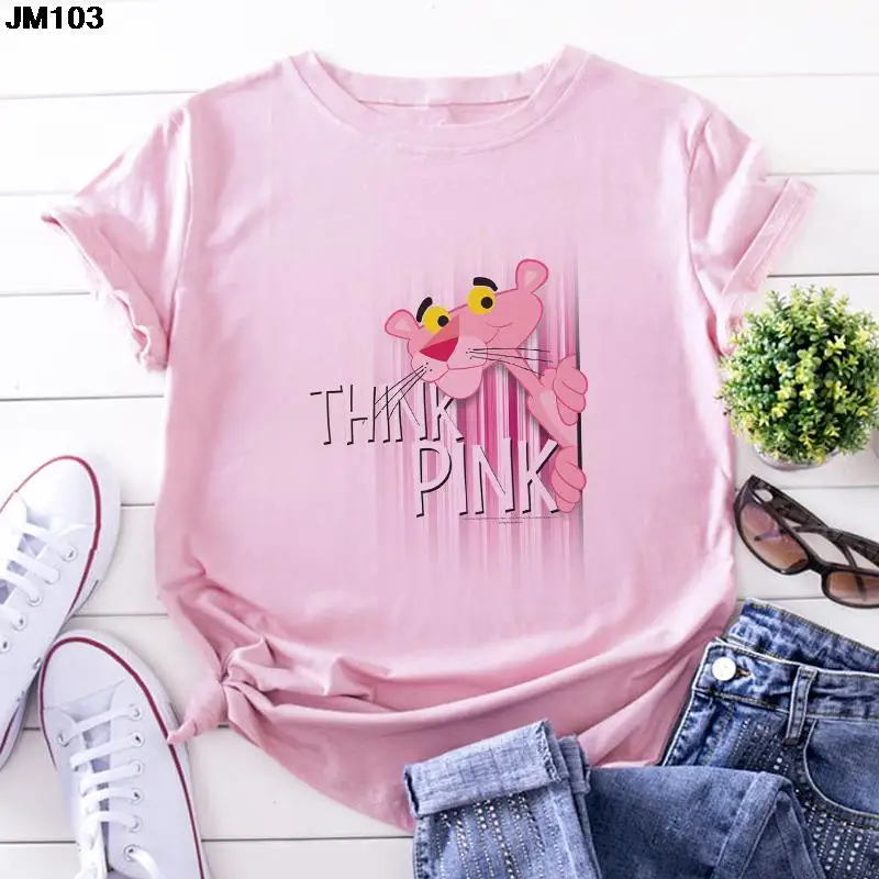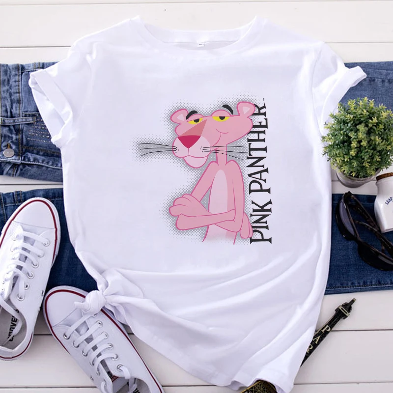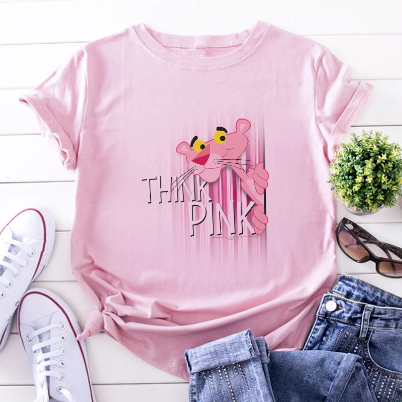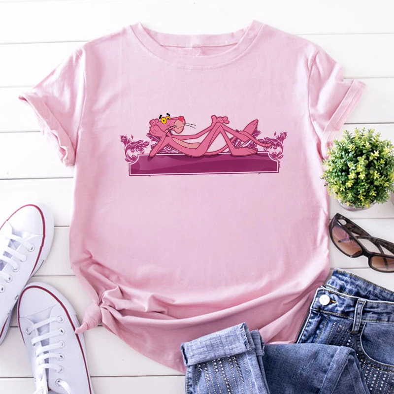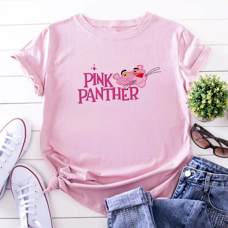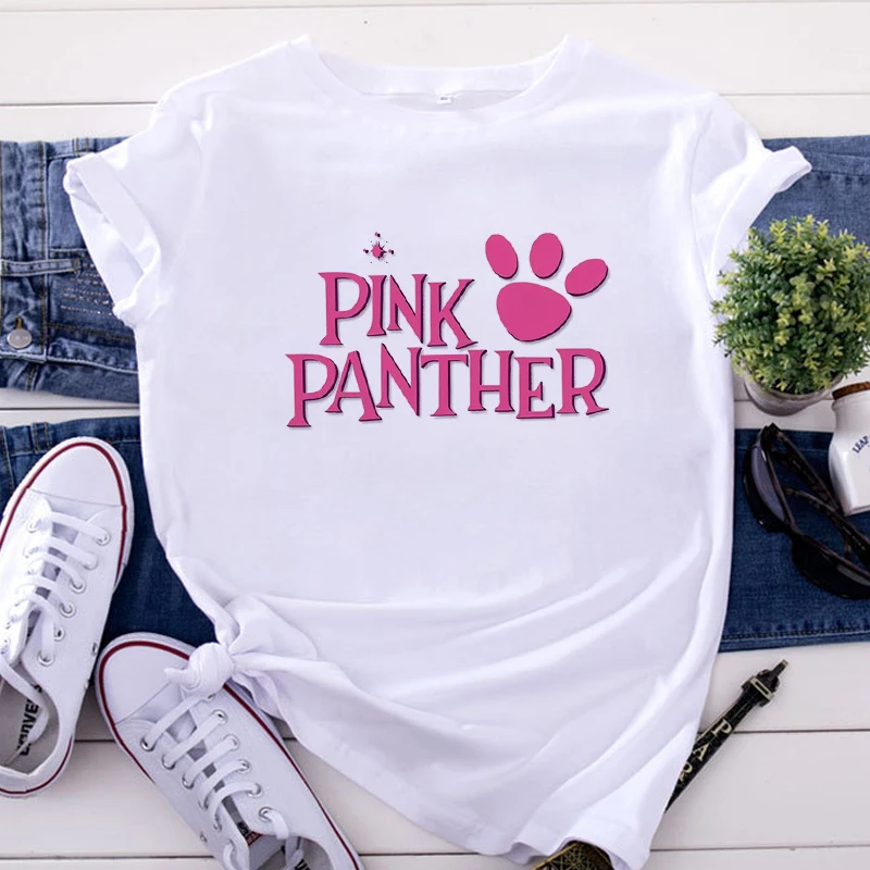 Женская футболка с принтом Пантеры, розовая Повседневная футболка с...