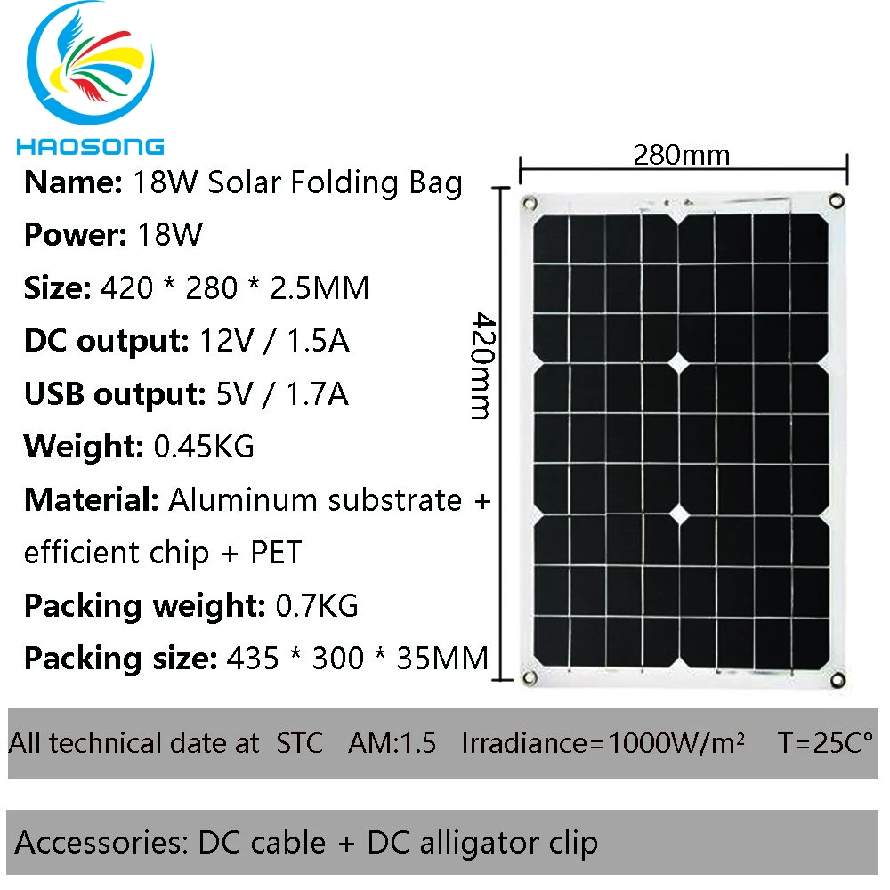 Solar panel power18W± 5%