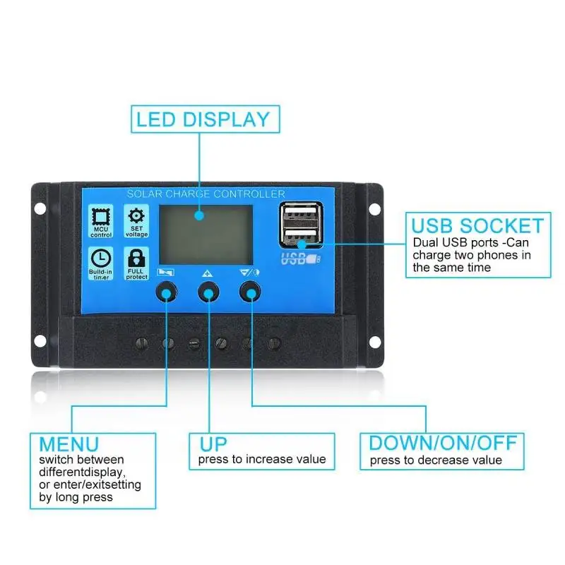 Solar controller voltageDC 12V / 24V Auto intelligent conversion