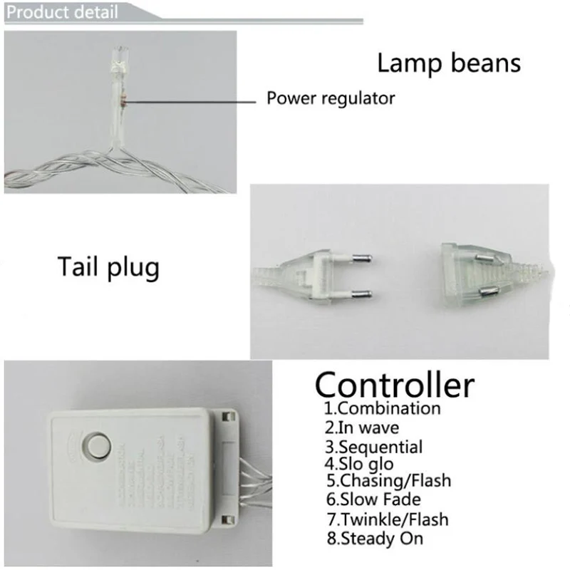 Характеристика: Низкое энергопотребление, безопасно и надежно Океаны маленьких звезд мерцают, мигают и волшебно меняются Его можно положить или повесить на стены, окна, двери, полы, потолки, травы, рождественские деревья и т. д. Идеальное украшение для Дня Святого Валентина, Рождества, других праздников, вечерние, свадебные и т. Д. С 8 различными режимами воспроизведения: комбинация, волны, последовательно, вспышка, чеканка/вспышка, медленная/выцветание, мерцание/вспышка, устойчивый. Спецификация: Наименование товара: 10 м водонепроницаемый светодиодный струнный светильник Цвет излучения: синий/Многоцветный/Теплый белый/белый Количество СВЕТОДИОДНЫЙ: 10 м 100 шт. Длина: 10 м Входное напряжение: AC110V/AC220V Вилка: ЕС/США Длительный срок службы:> 50000 часов Сертификация: CE & RoHS Примечание: Светодиодный светильник со шнуровкой является водонепроницаемым, но контроллер не является водонепроницаемым, пожалуйста, Защитите контроллер от дождя и воды, когда он будет использоваться на открытом воздухе, спасибо!