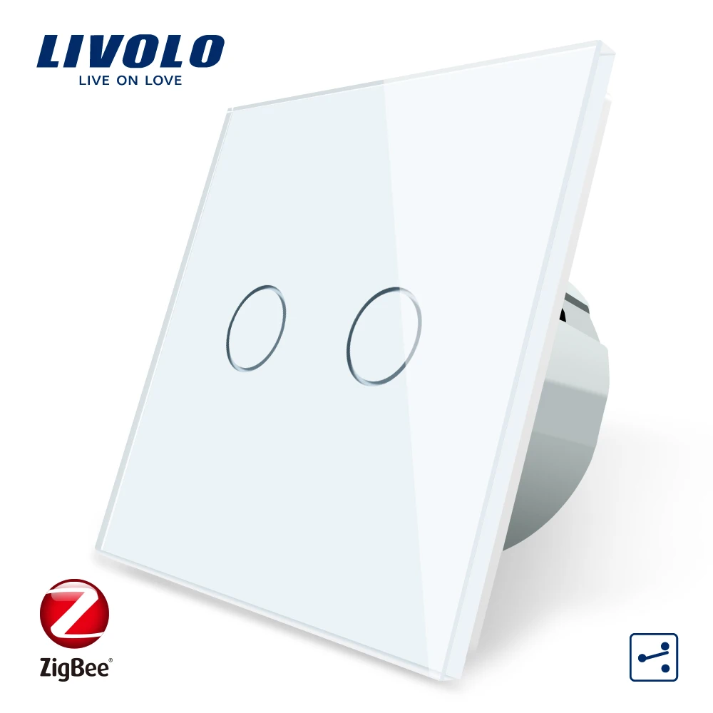 Умный Беспроводной Выключатель Livolo ZigBee, настенный выключатель европейского стандарта с Wi-Fi, 2 клавиши, 2 способа работы, для Google Home ,Alexa