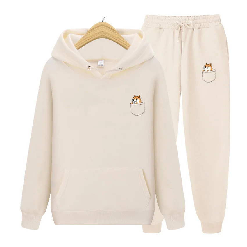 Толстовка с капюшоном и штаны, Осень-зима, свитшот с капюшоном, спо...
