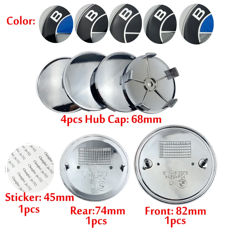 7 шт.комплект, эмблема передней капота из углеродного волокна 82 мм + задний значок 74 мм + колпачок ступицы колеса 68 мм + наклейка на рулевое колесо 45 мм