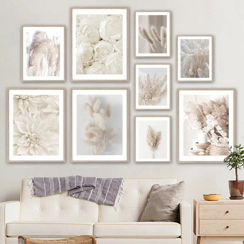 Настенная картина с изображением сушеных цветов, бежевого цвета