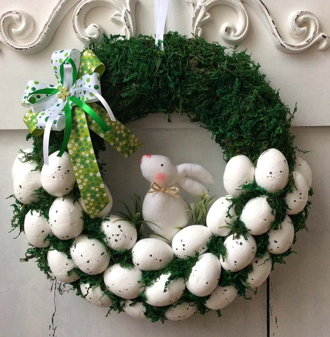 Пасхальное кольцо из ротанга, круглый шар из пенопласта, цветной ша...