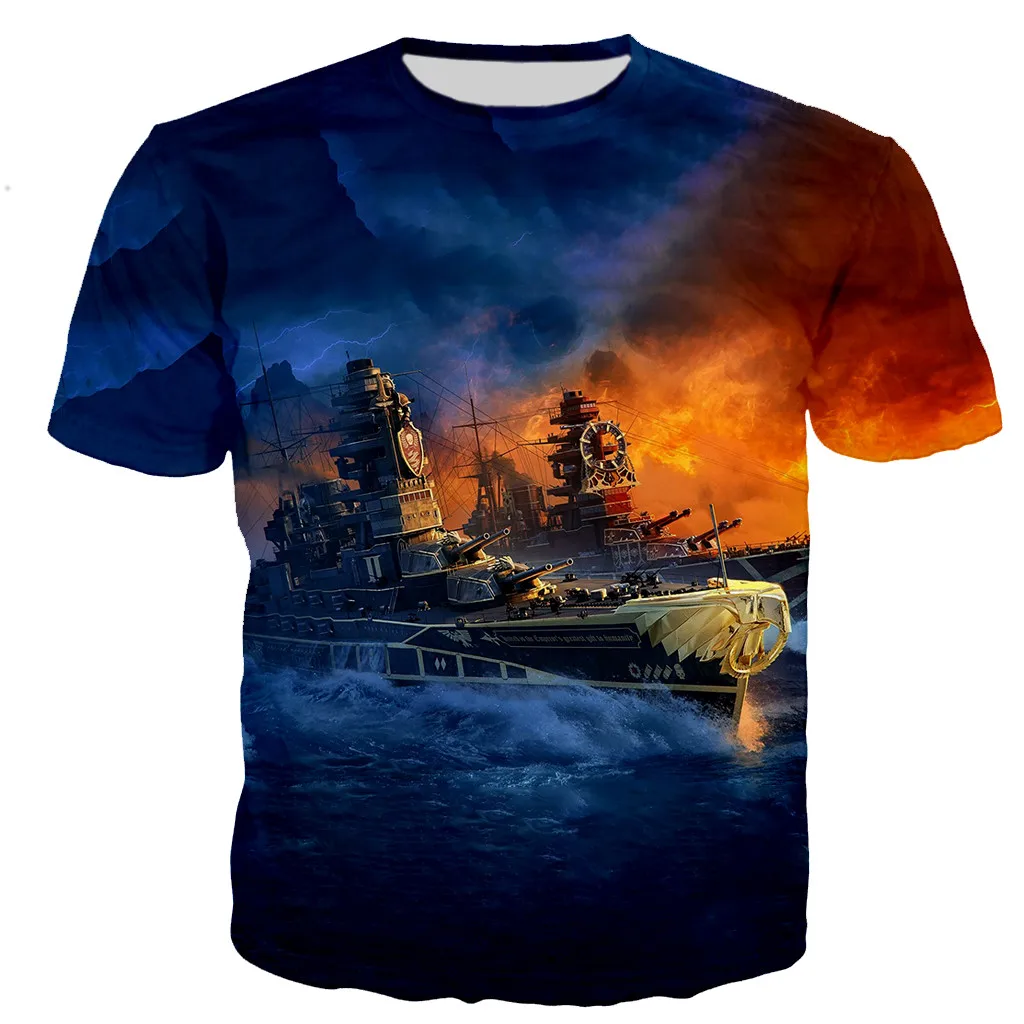 Мужскиеженские футболки с 3D-принтом Warship, повседневные футболки в стиле Харадзюку, в стиле хип-хоп, Популярные топы большого размера из полиэстера с круглым вырезом, 2022