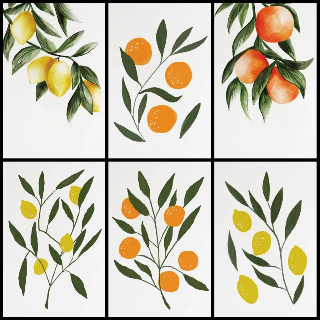 Абстрактная Картина на холсте Лимон Апельсин акварель Цитрусовые фрукты постер Бохо кухня настенное искусство ботаническая Картина Декор для дома комнаты