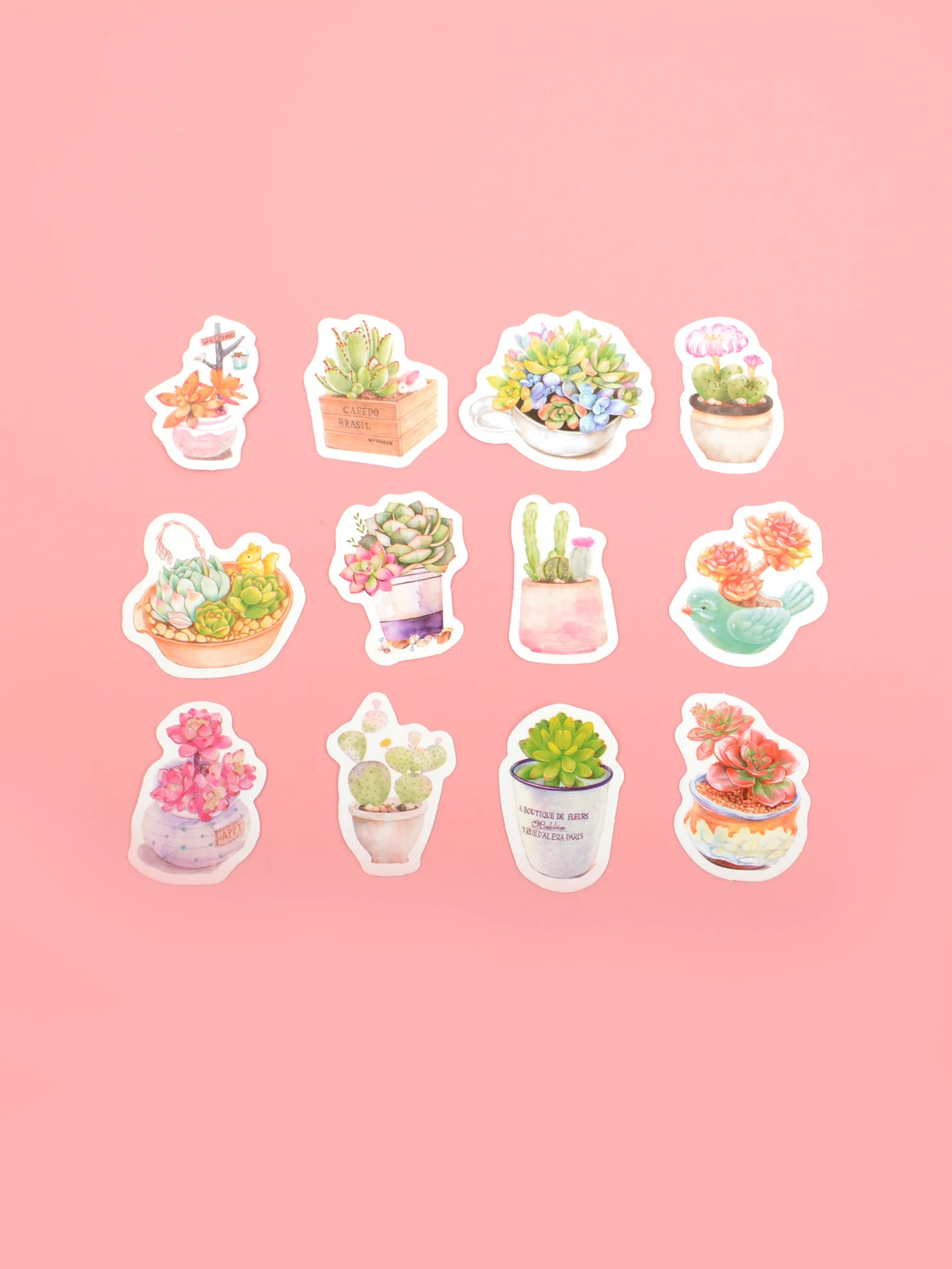 45 шт., наклейки различных форм, серия растений и суккулентов в горшке
