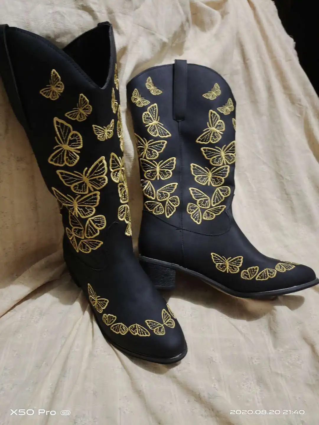 Женские кожаные ковбойские сапоги с вышивкой в виде бабочки, больши...