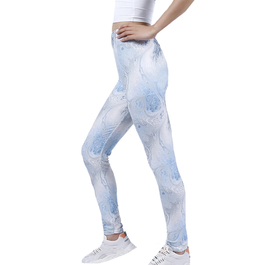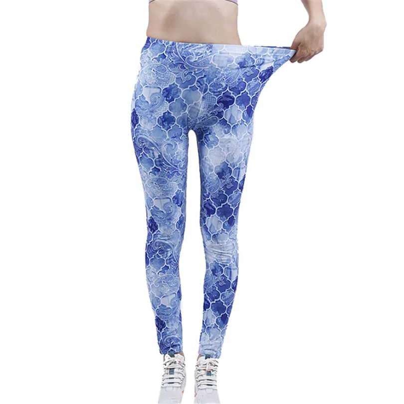 Женские штаны LJCUIYAO, обтягивающие спортивные сексуальные штаны для йоги, эластичная ткань, тренировка, фитнес, модная одежда, чернильно-синяя Цветочная одежда