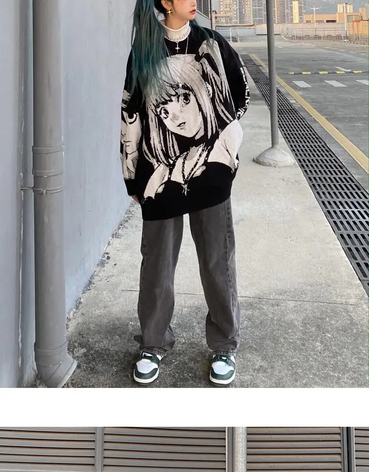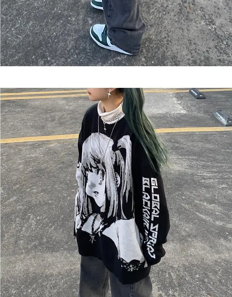 Трикотажный свитер в стиле аниме для девочек, уличная одежда в стил...