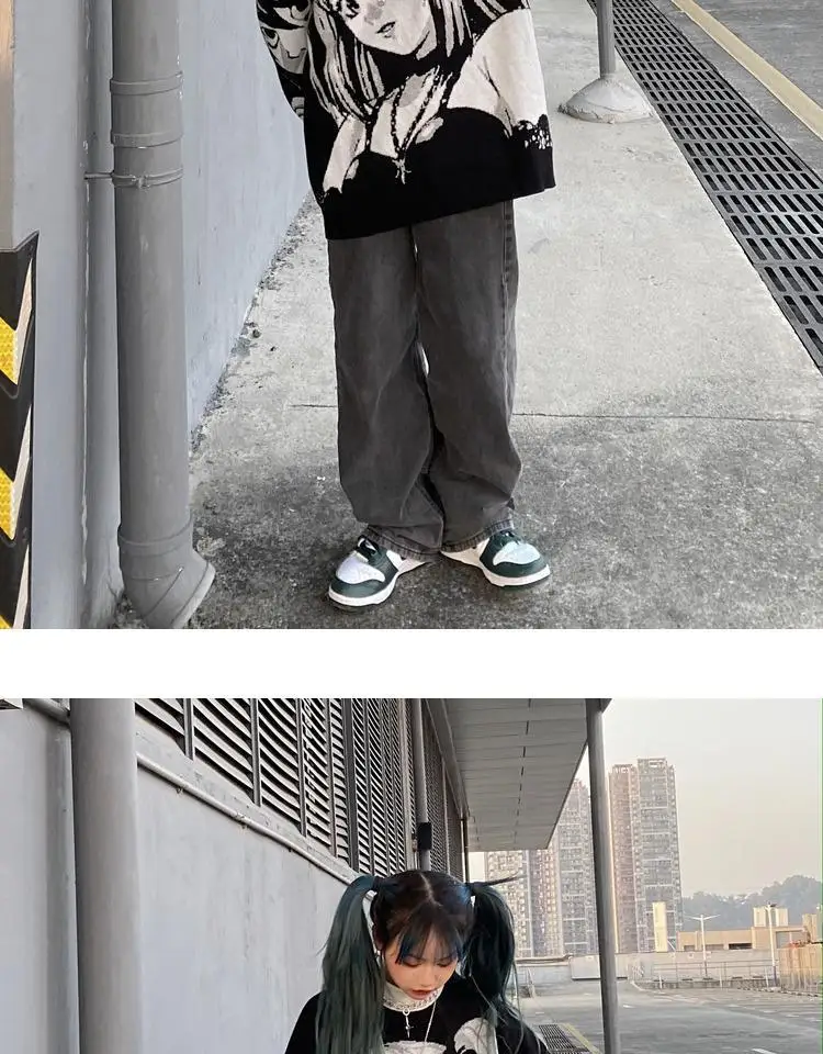 Женский свитер с аниме-принтом Deeptown, винтажный трикотажный пуло...