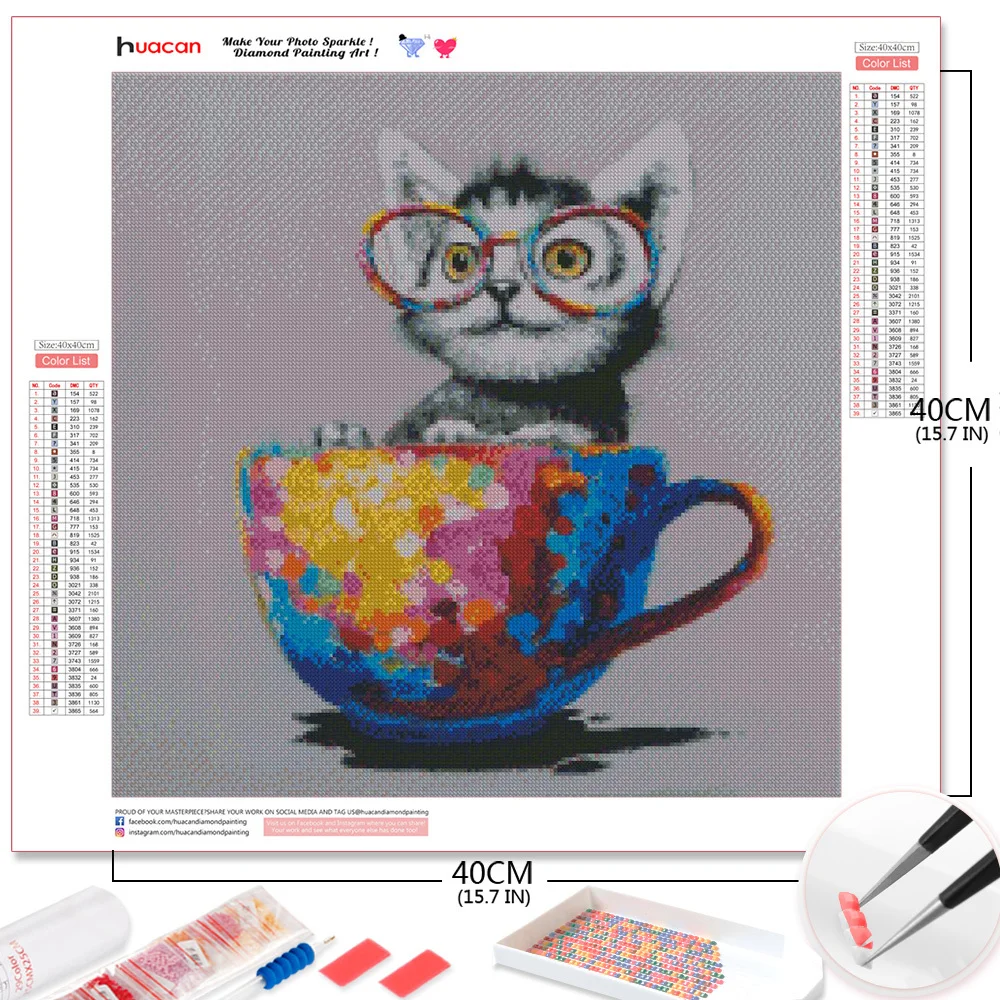 Алмазная живопись HUACAN с животными, кошка, собака 5D, алмазная вышивка своими руками, полный набор для вышивки крестиком, украшение на стену