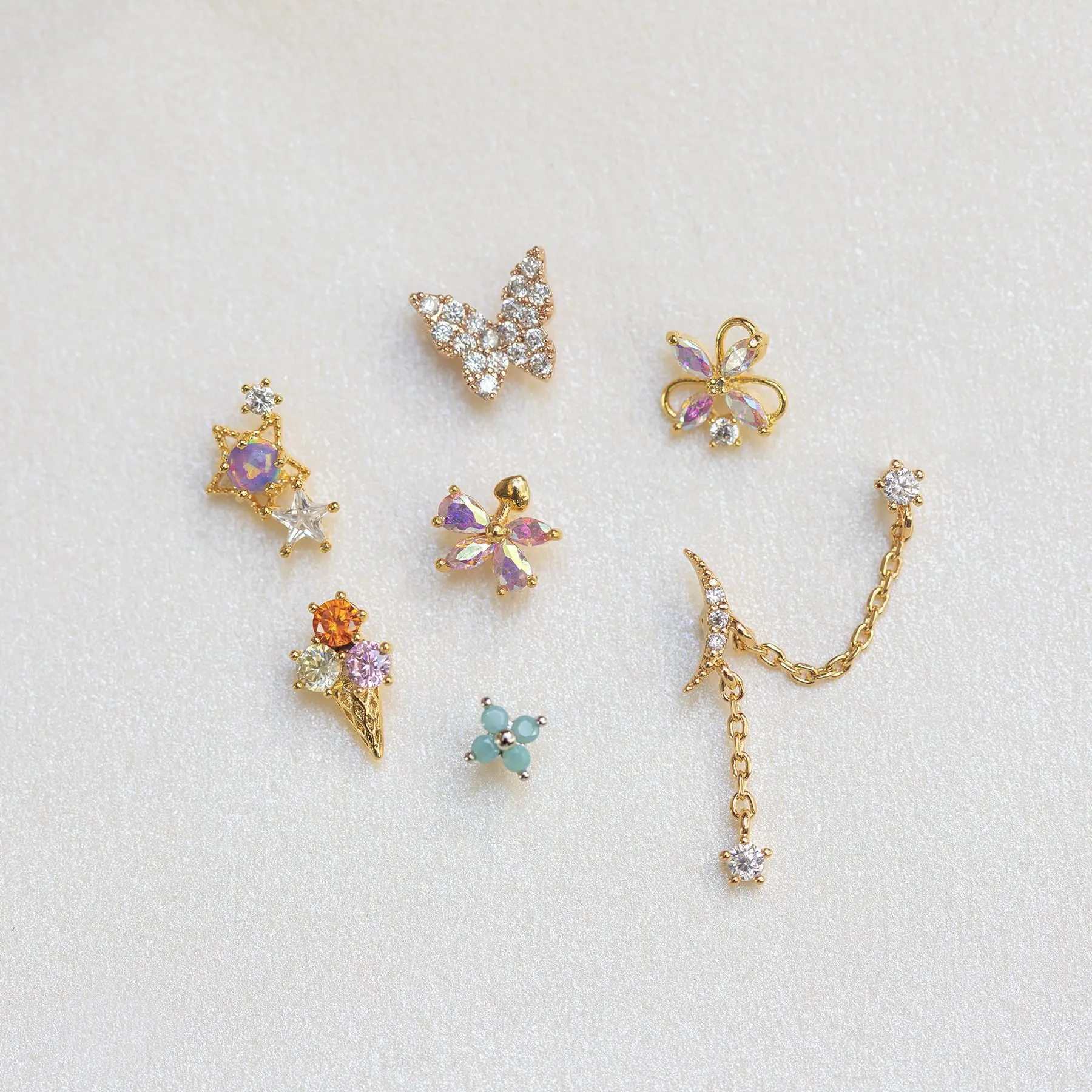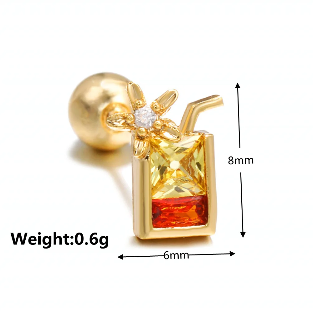 Женские серьги-гвоздики с фианитами, милые украшения для пирсинга хрящевых тканей леденца, мороженого, козелка и раковины с кристаллами CZ, ювелирные изделия Для Пирсинга Ушей