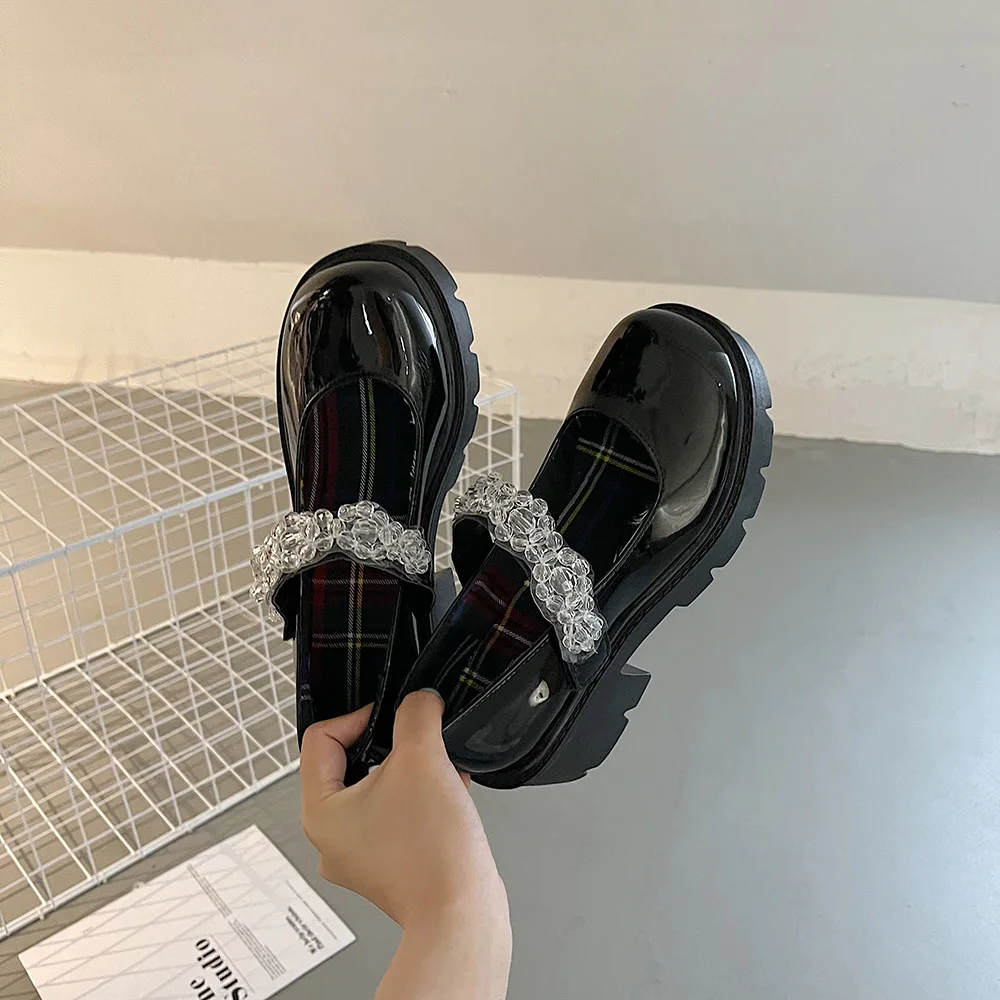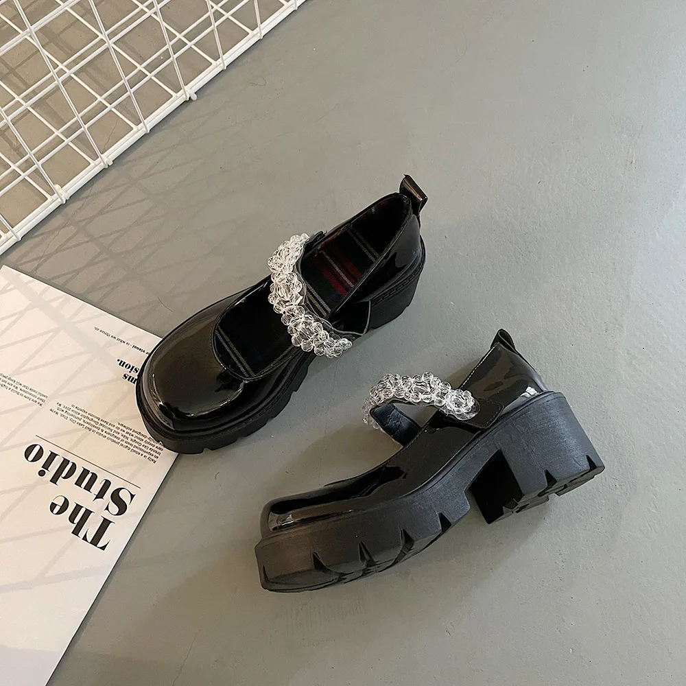 Модная брендовая женская обувь Plaform, женские туфли мэри джейн на массивном каблуке для девочек, дизайнерская женская обувь Стразы с ремешком и пряжкой