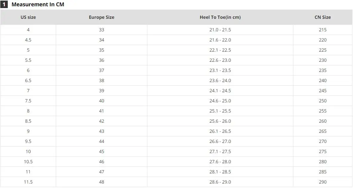 В соответствии с длиной Вашей стопы, пожалуйста, выберите правильный размер.