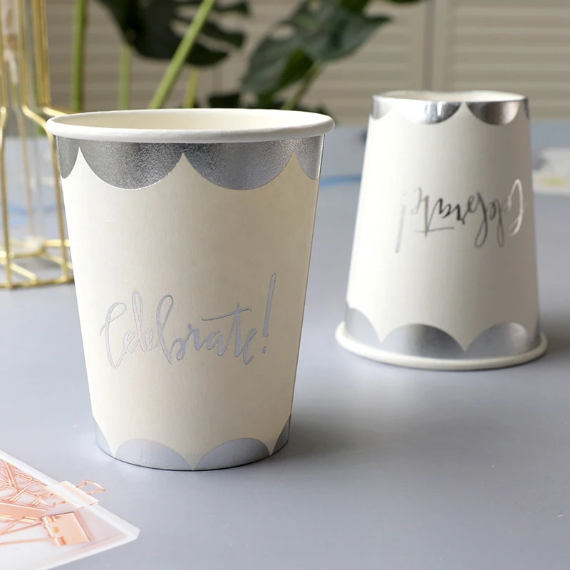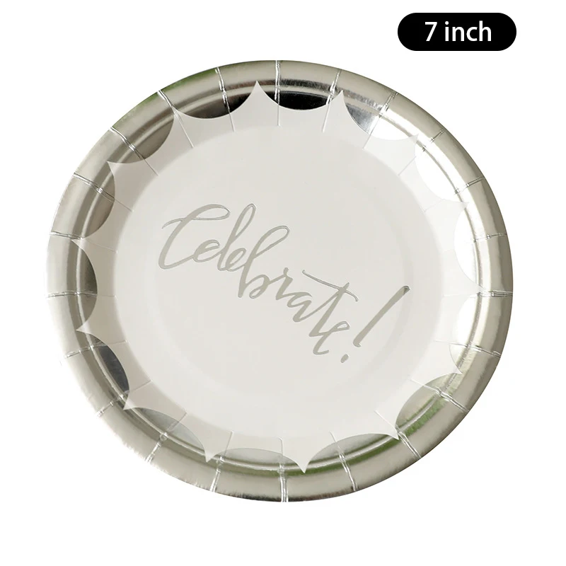 Набор одноразовой посуды из 10 предметов, серебряные свадебные украшения, горячая Серебряная кружевная тарелка для торта, 79 дюйма, бумажная чашка