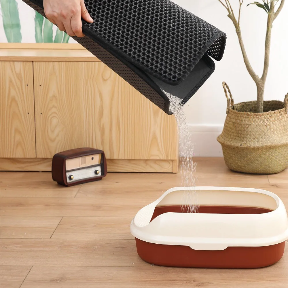 Коврики из пены EVA для кошачьего наполнителя, закрытый контейнер с песком, поднос для туалета для кошек, поднос для кошачьего наполнителя, большая двухслойная Нескользящая подставка для домашних животных
