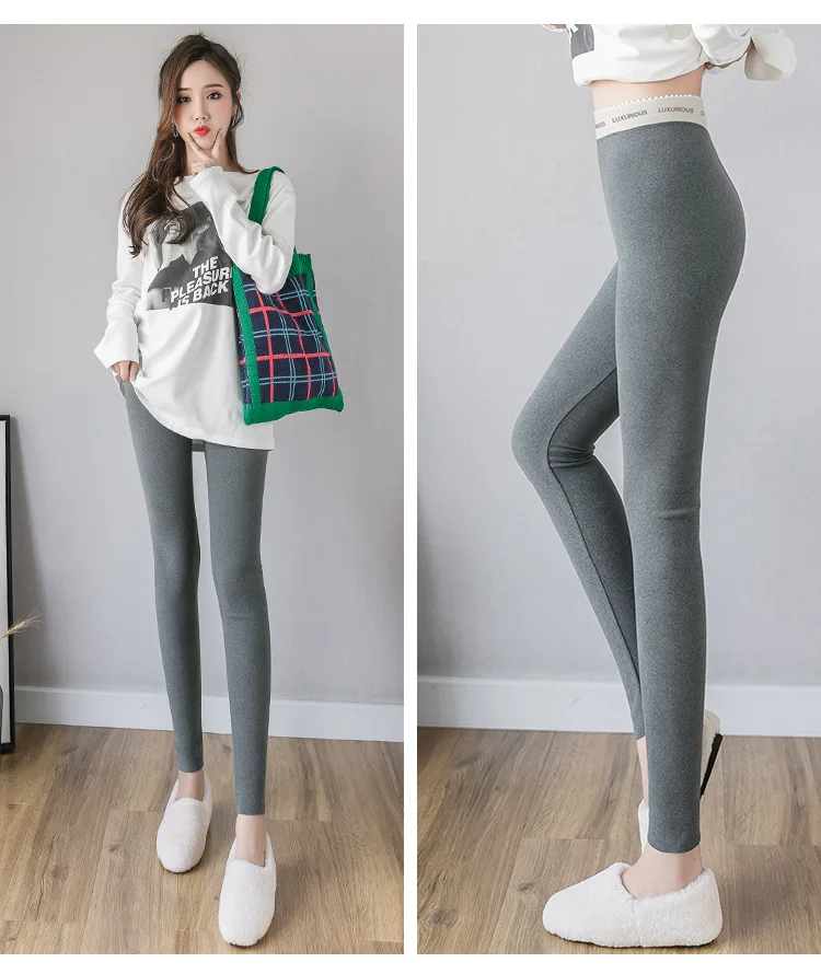 Зимние теплые леггинсы с высокой талией, женские леггинсы, однотонные леггинсы с бархатной подкладкой, утепленные удобные термоэластичные