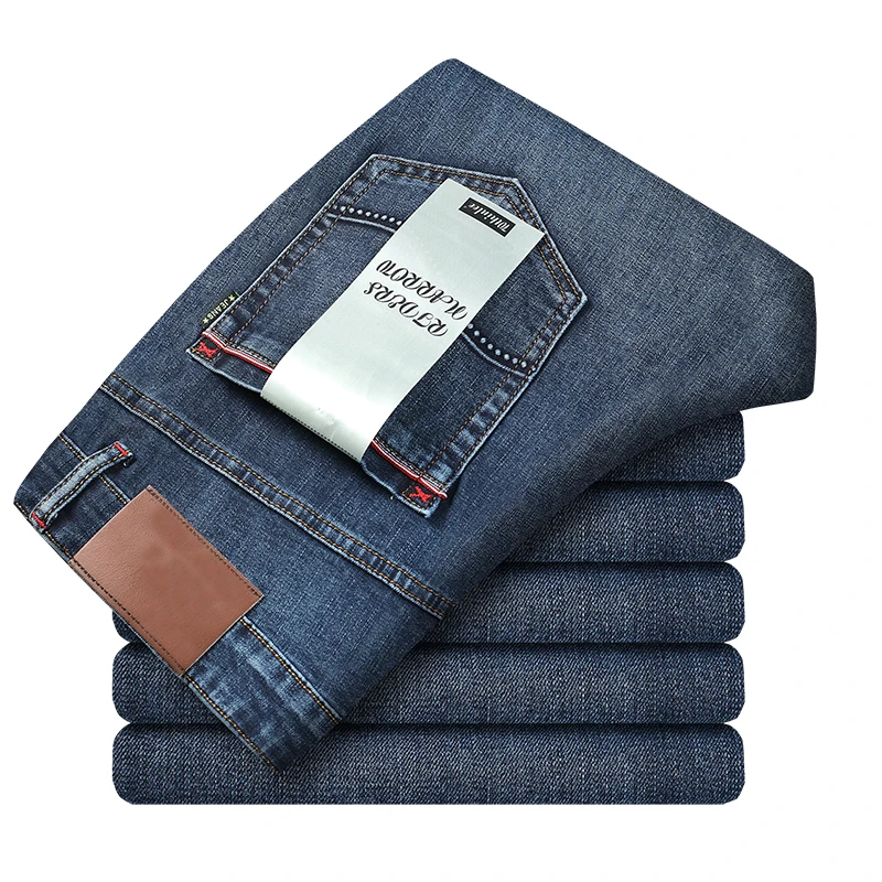 Мужские классические джинсы, эластичные Стрейчевые тонкие джинсы в ...