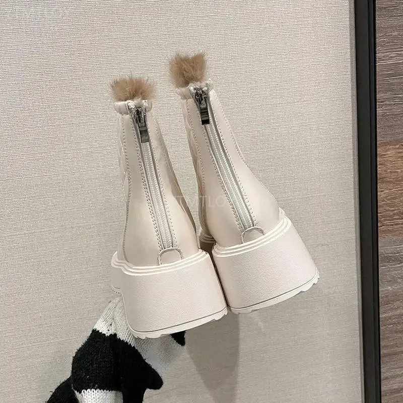 Женские Теплые ботильоны на меху, мотоциклетные ботинки бежевого и ...