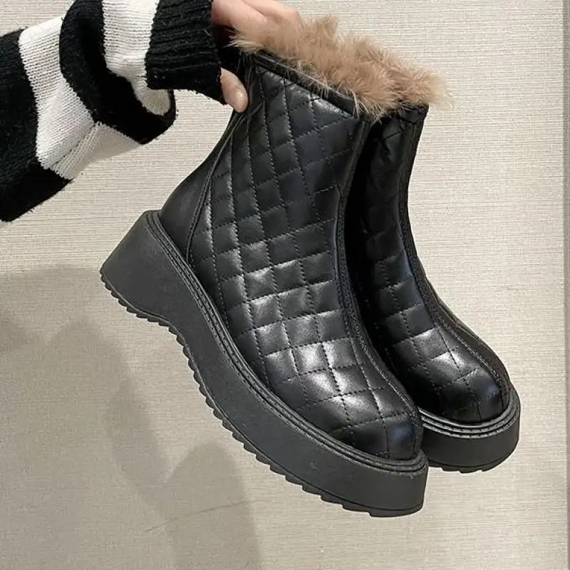 Женские нескользящие ботинки на нескользящей подошве, теплые, Роскошные, дизайнерские, черные, с круглым носком, на квадратном каблуке