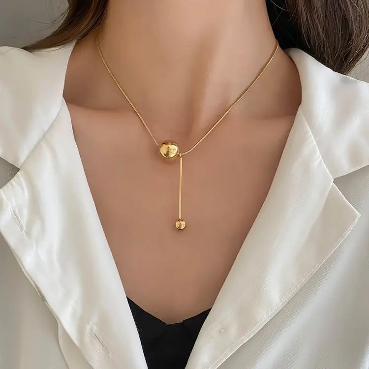 Классическая Подвеска в виде шара, короткое ожерелье из титановой стали для женщин, корейская бижутерия, аксессуары для девушек, цепочка до ключиц