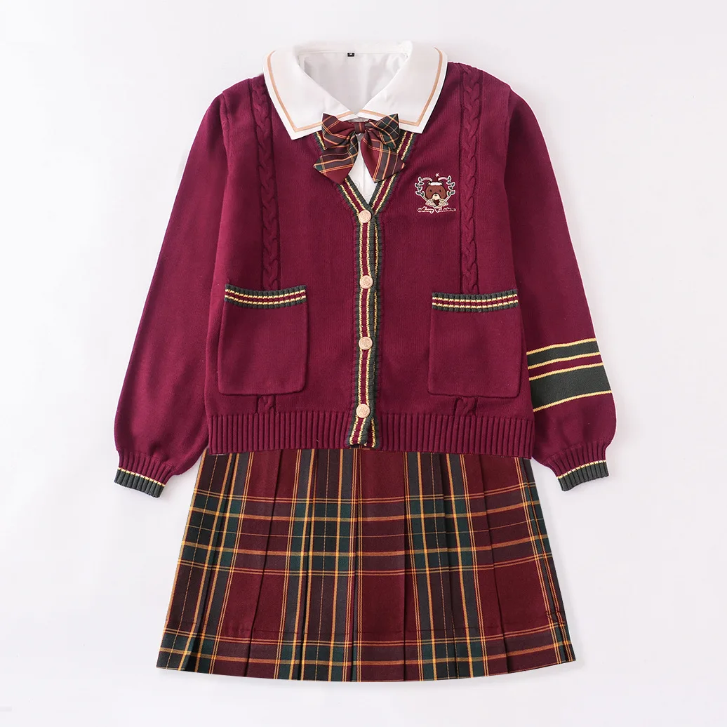 Рождественский полный комплект JK вязаный кардиган красная куртка школьная форма для студенток осень зима Повседневный шерстяной свитер с V-образным вырезом
