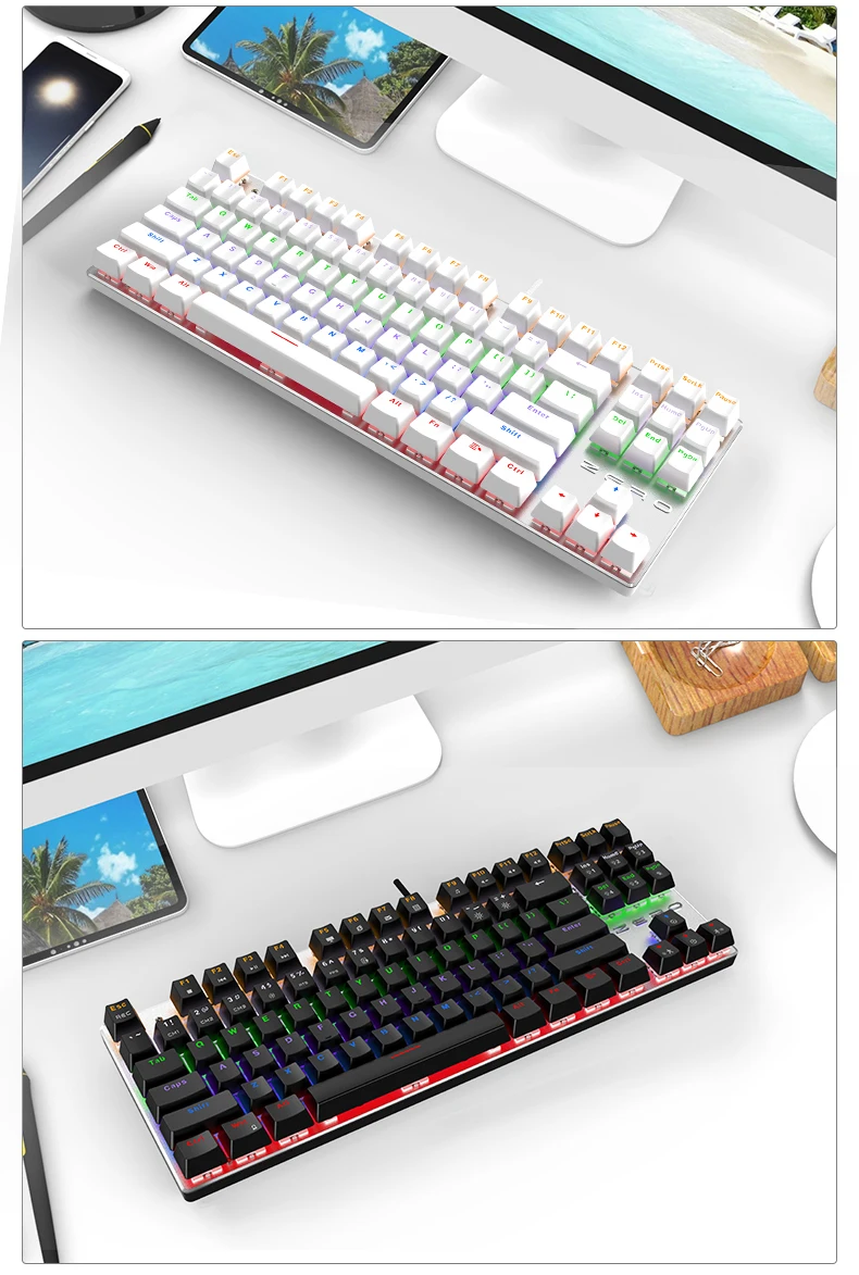 Механическая клавиатура и мышь Metoo Edition, набор с 87104 клавишами, красный, синий, черный переключатель, игровая мышь, клавиатура для планшетного компьютера