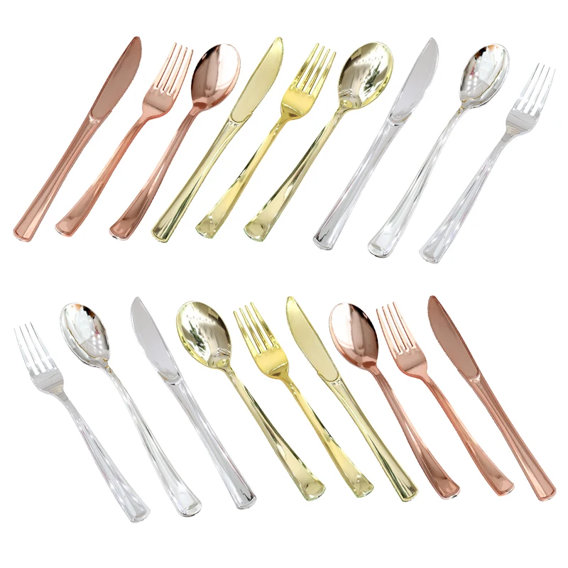 10 шт. одноразовых золотых, серебряных, розовых, золотых ножей и вилок