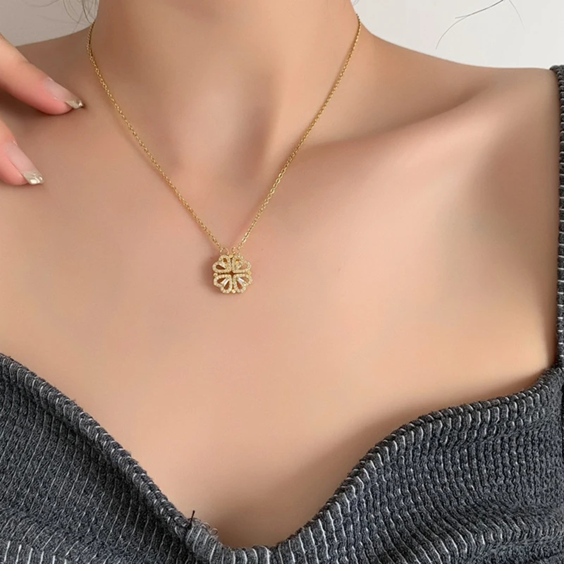 Женское ожерелье с подвеской в виде четырехлистного клевера