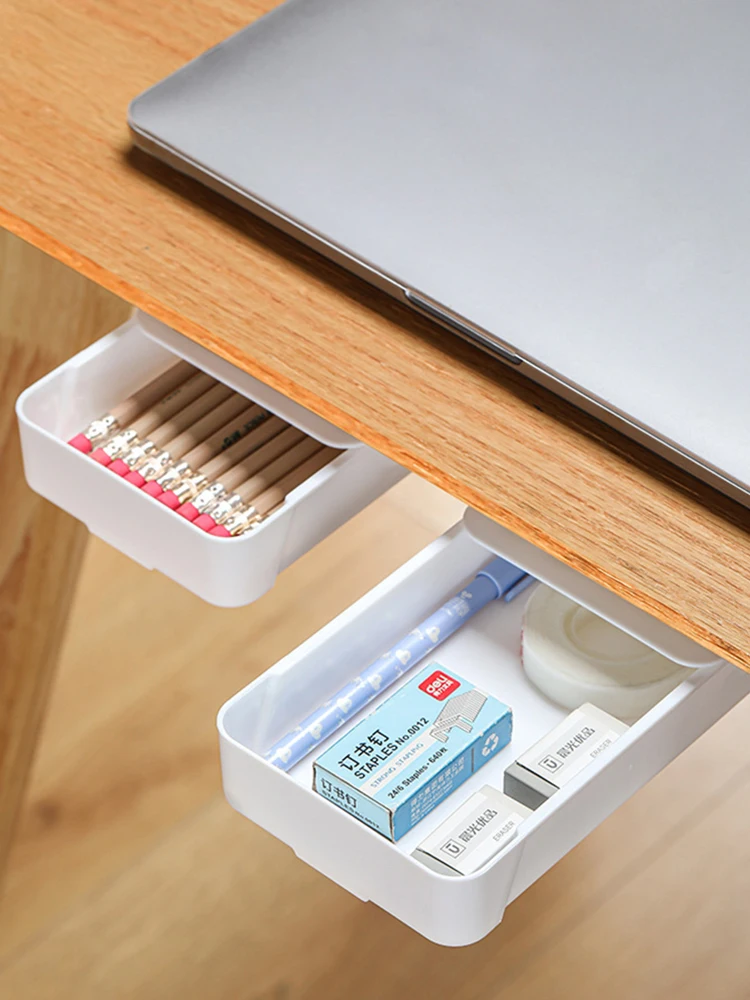 Ящик-органайзер под столом, лоток для карандашей, коробка для хранения, скрытый канцелярский держатель для ручек, чехол, самоклеящаяся палка для офиса, школы, дома