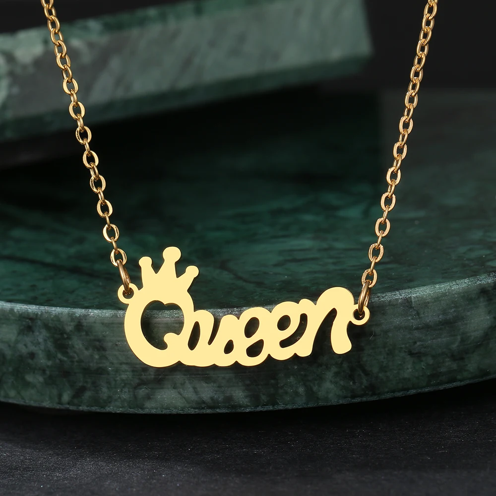 Ожерелья из нержавеющей стали с надписью Корона, кулон в виде королевы, цепочка для воротника, модное ожерелье для женщин, ювелирное изделие, подарок для вечеринки, один предмет