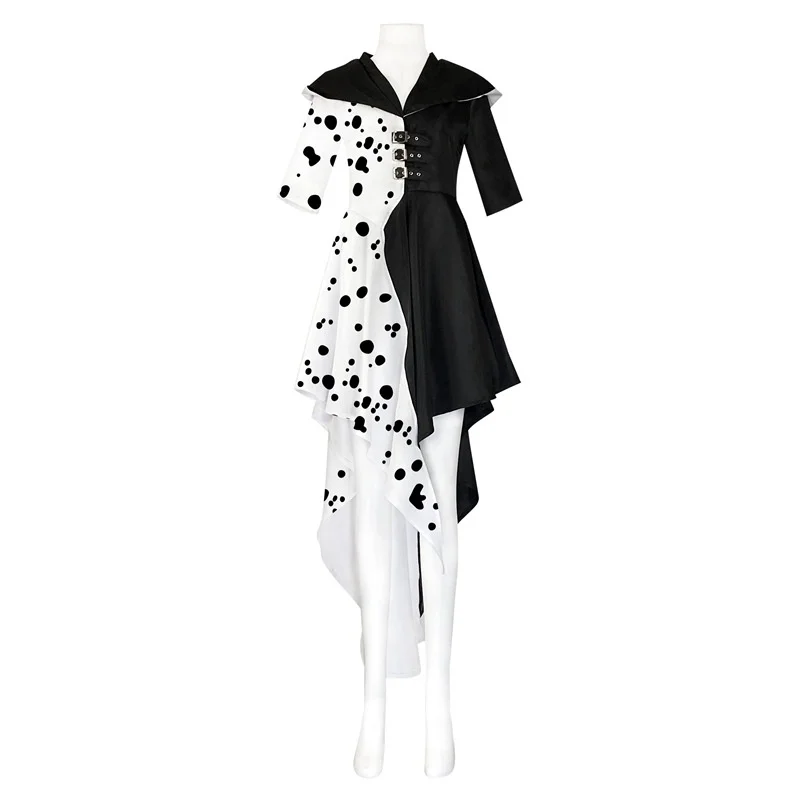 Круэлла де Виль Косплей Костюм женский черный белый в горошек плать...