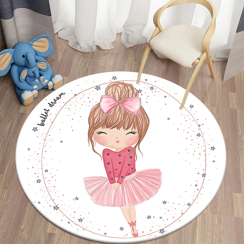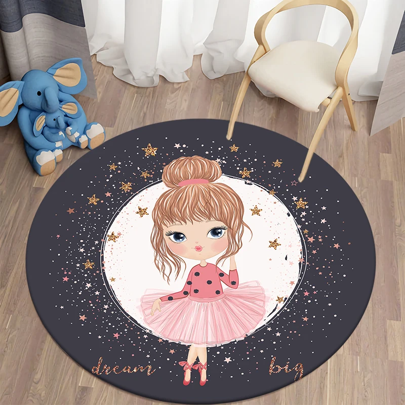 Детский ковер с мультяшным принтом для девочек, милые коврики, круглый ковер для гостиной, напольный коврик, фланелевый нескользящий коврик для детей
