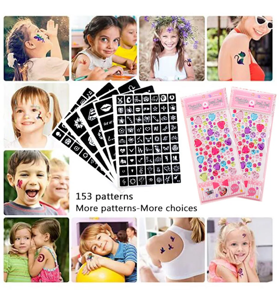 Набор для Временной Татуировки с блестками, 30 цветов, 153 шаблонов