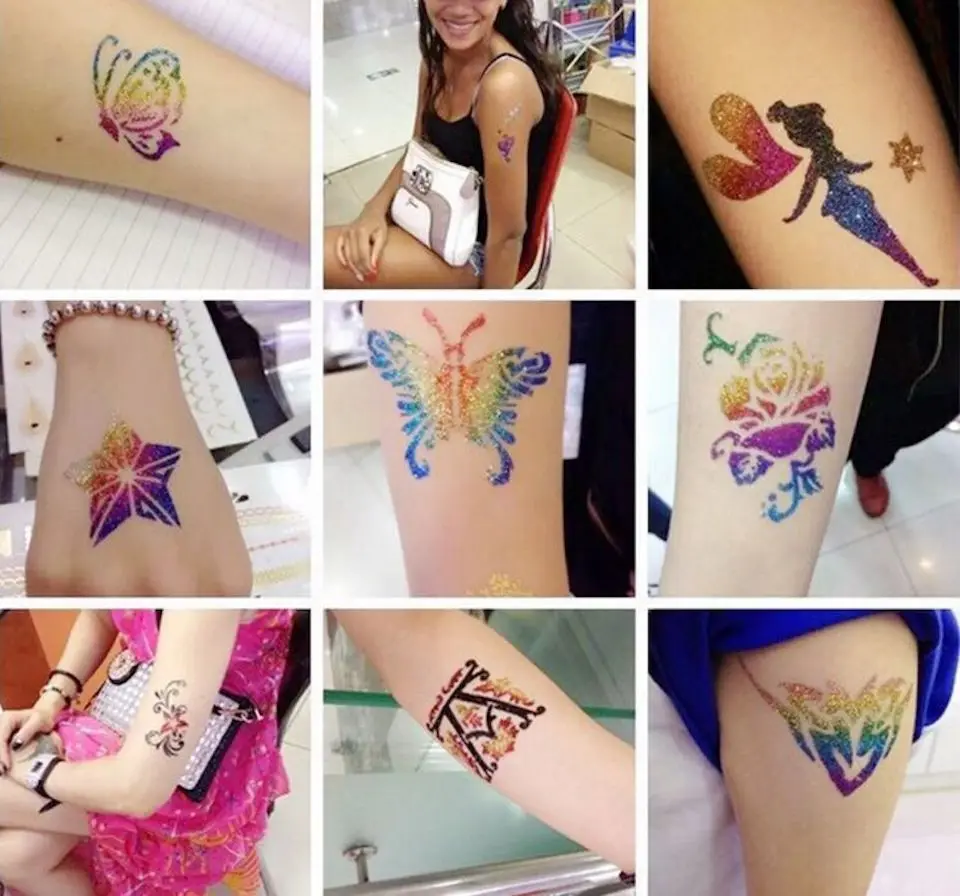 25 цветов Блестящий Блеск 2 клея 5 кистей 3 полых трафарета Временные татуировки шаблоны для лица тела ногтей наклейки