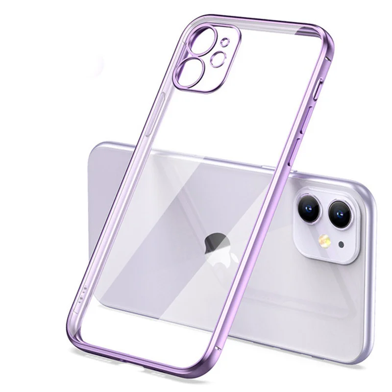 Мягкий чехол для телефона с гальваническим покрытием для iphone 12 pro max, линза с прямыми краями, полное покрытие, 13 мини Прозрачный чехол из ТПУ, 6 plus, 7, 8