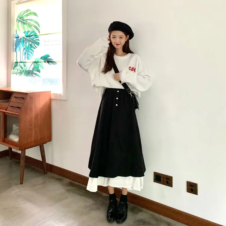 Женская юбка с завышенной талией, длинная трапециевидная юбка в Кор...